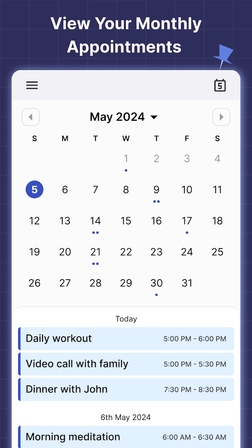 - Smart Date Navigation: Quick jump to specific weeks or months via search, with highlighted days based on user-defined criteria like “work weeks” or “vacation time.” It simplifies navigating long-term planning by reducing scrolling and providing context-aware navigation that anticipates user needs based on current focus.