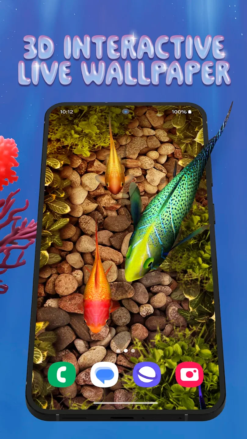 - Interactive Touch Controls: Gently touch the screen to feed a designated fish or trigger specific animations, creating a playful interaction with the virtual inhabitants. This user-friendly feature adds a layer of fun and engagement, making the wallpaper more dynamic and encouraging users to actively participate in their underwater environment.