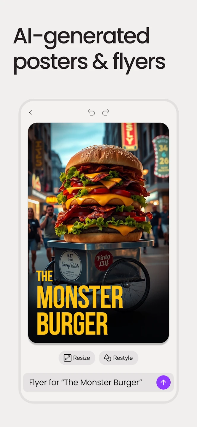 - Style Transfer & Custom Templates: The app applies famous art movements to original photos or lets users mix styles with drag-and-drop templates, offering intuitive design flexibility. This capability helps non-designers create professional-looking artwork by blending AI-generated patterns with personal photos, perfect for social media posts or personalized gifts.