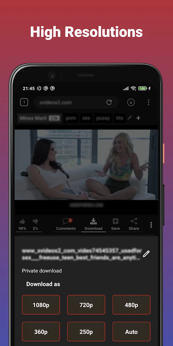 A: You can typically download videos in their original quality (up to 4K) depending on the source. Our app maintains the best source quality available.