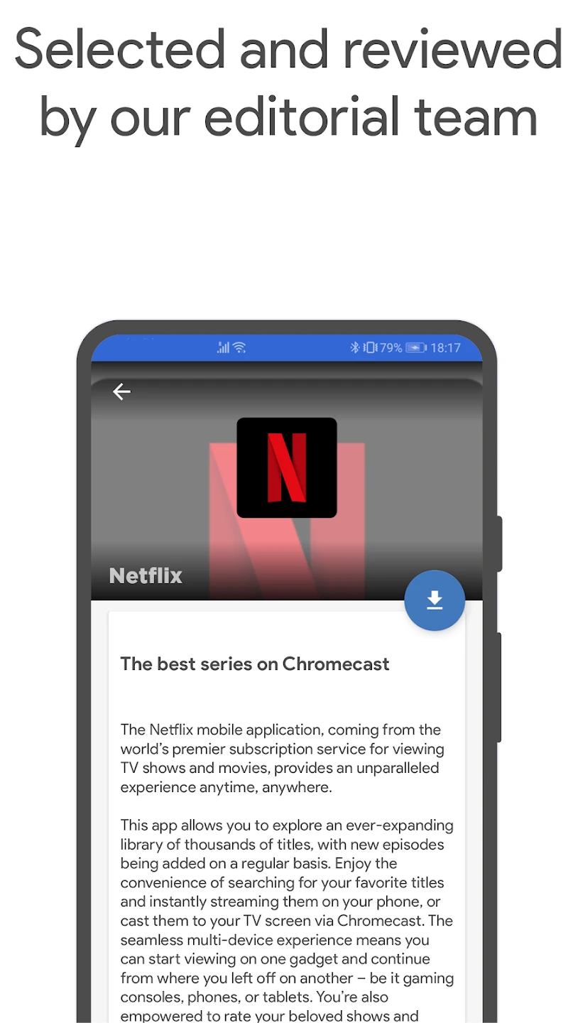 - Comprehensive App Catalog: Browse through thousands of applications compatible with Chromecast and Android TV devices. Benefit immensely from having a single source for discovering entertainment, productivity, and utility apps designed specifically for your casting setup. This saves users the hassle of searching multiple app stores or websites.