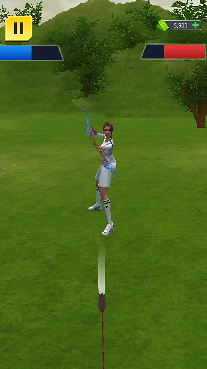 • [Core Gameplay Loop]: Players shoot arrows at various targets across different levels, competing against AI or human opponents. The objective is to achieve high scores or eliminate opponents by precise aiming and quick reactions within timed rounds. Players interact primarily through touch controls, adjusting aim and trigger strength.