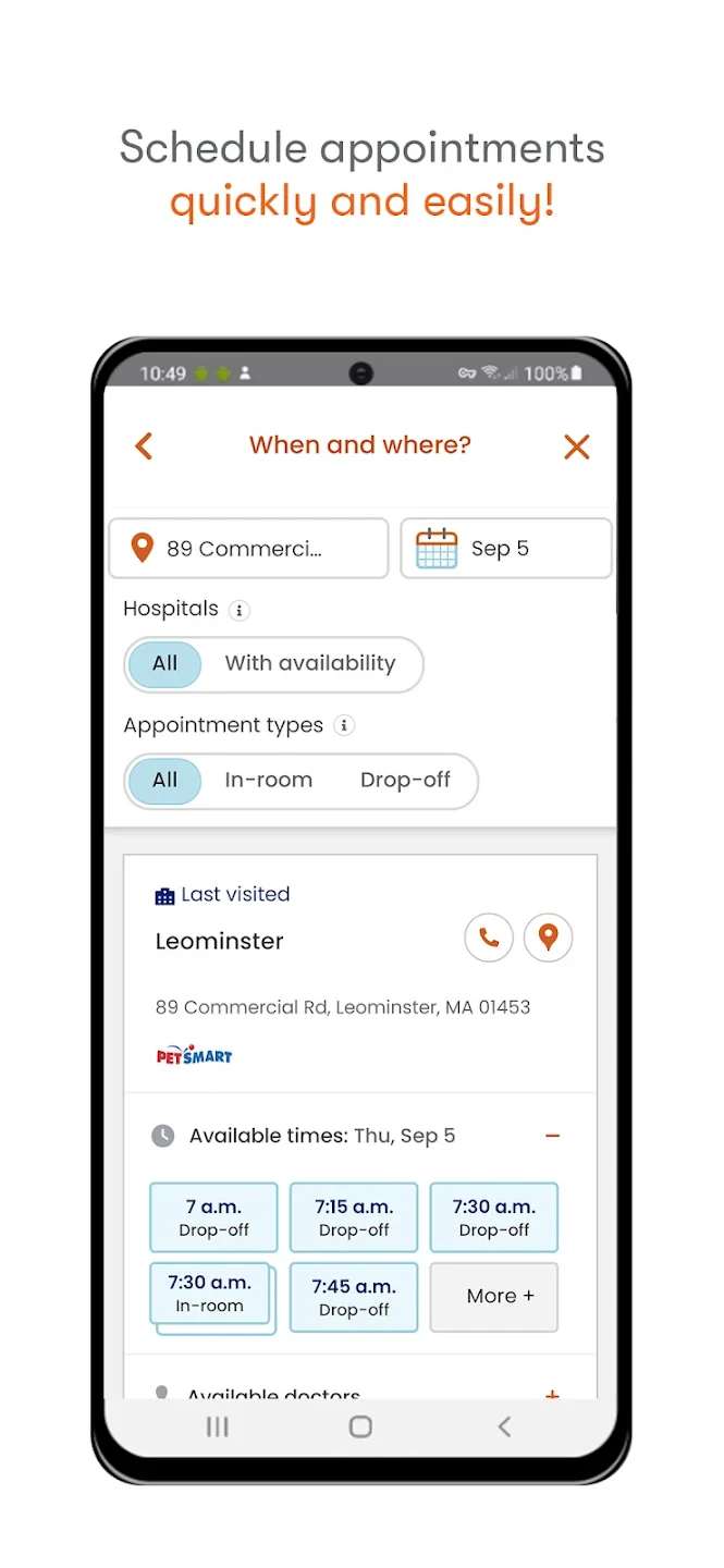 - Veterinary Appointment Booking: Schedule and manage non-emergency appointments directly through the app, receiving reminders and viewable history. This feature simplifies the booking process, saving time compared to phone calls, especially helpful for busy schedules or coordinating visits around pet care routines.