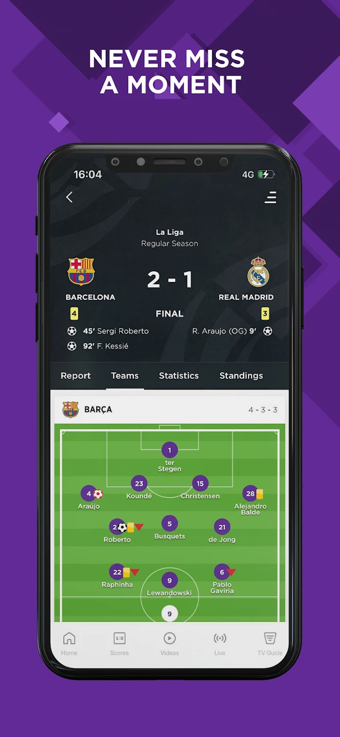 - Team & Fixture Calendar: Get an organized schedule of all your favorite teams’ upcoming matches, complete with venue information and kick-off times. Plan your viewing parties or set calendar reminders for important events with just a few taps.
