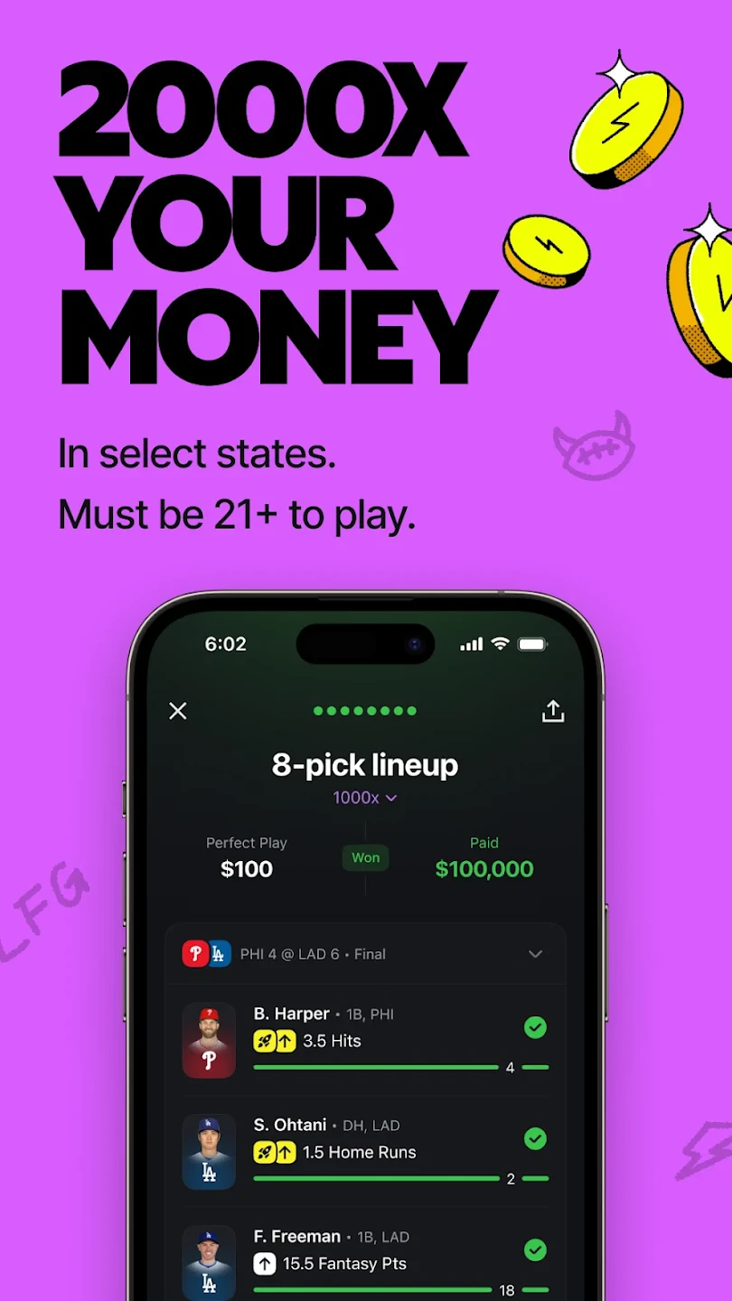 • Performance Analytics: Get detailed insights on your fantasy teams and betting selections through interactive charts and statistical comparisons. The app offers daily picks suggestions from professional analysts to enhance your betting strategy while helping you understand why certain selections have proven success rates.