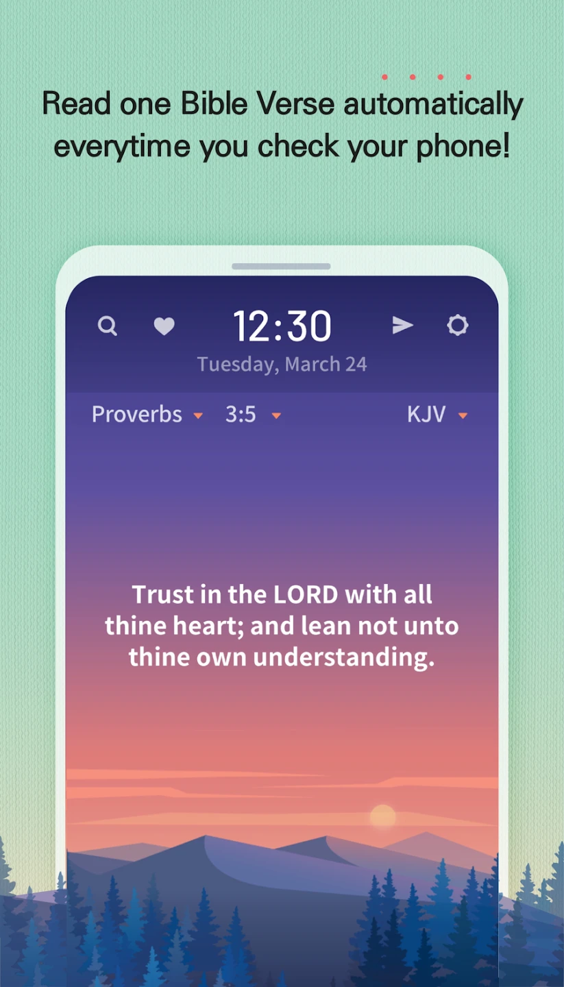 • Bible Verse Display: Automatically presents a random Bible verse each time you unlock your device. This constant exposure helps users encounter scripture regularly, even when they’re not consciously seeking it. For example, someone might wake up with a comforting verse that sets a peaceful tone for the day.