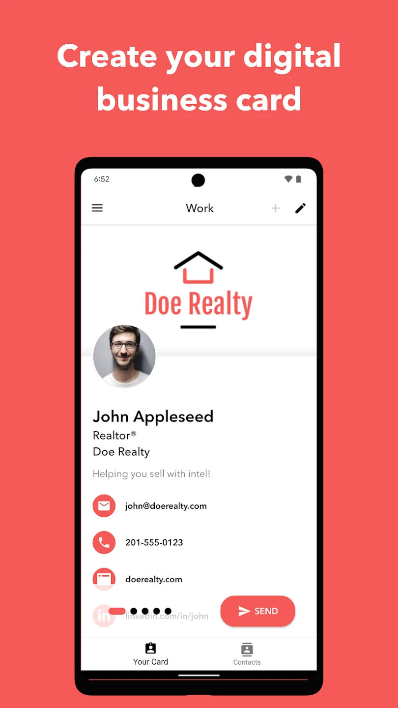 - Unified Contact Management: Seamlessly manage all your digital and physical contacts within a central dashboard view. The app allows quick access to contact details and facilitates quick sharing across multiple platforms or recipients, improving organization and follow-up efficiency.