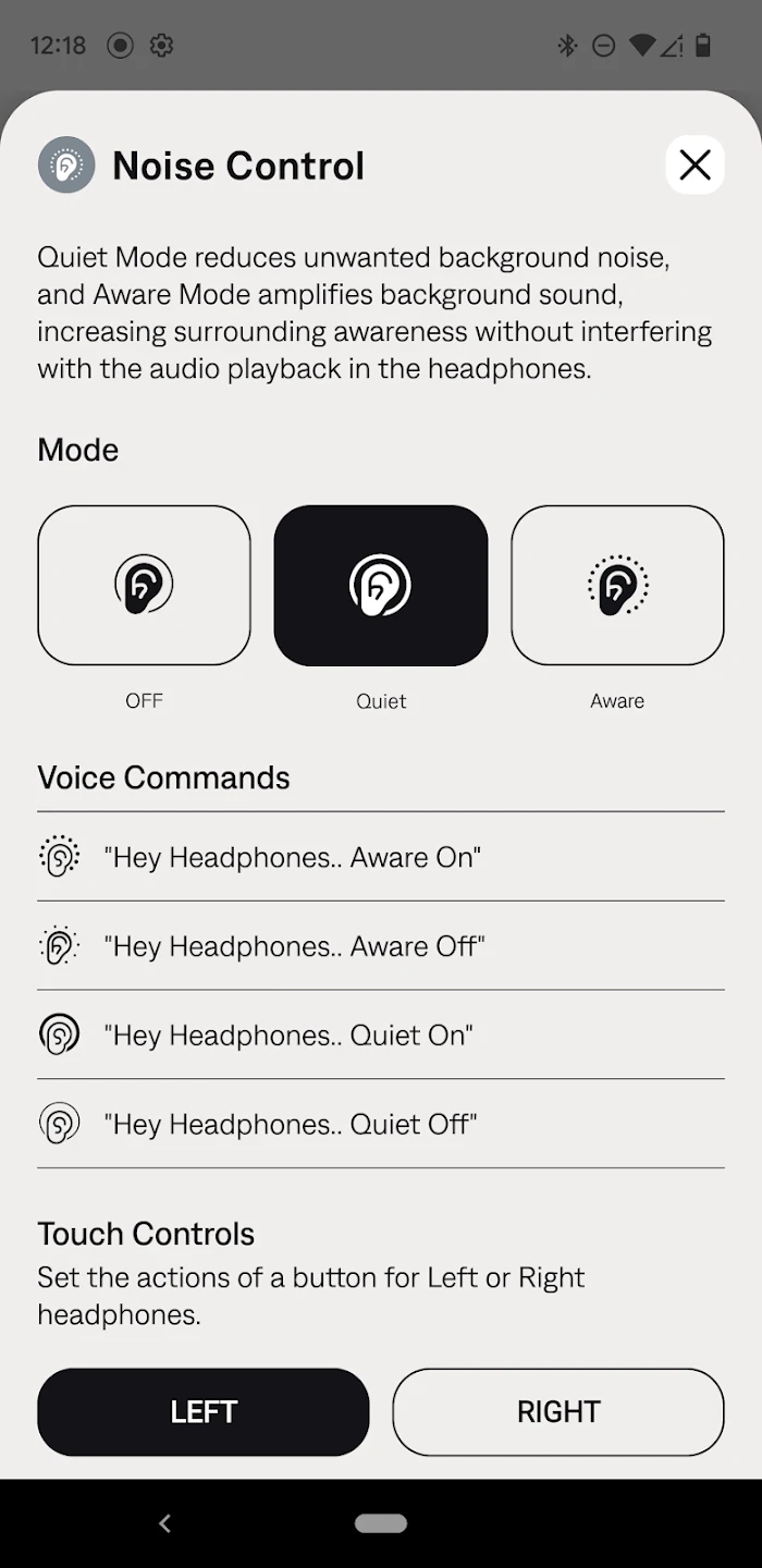 - Active Noise Cancellation (ANC) Adjustment: Provides granular control over noise reduction levels with precision sliders; Use this feature to dial back ANC during light rain to avoid muffled sounds while keeping maximum cancellation for flights.