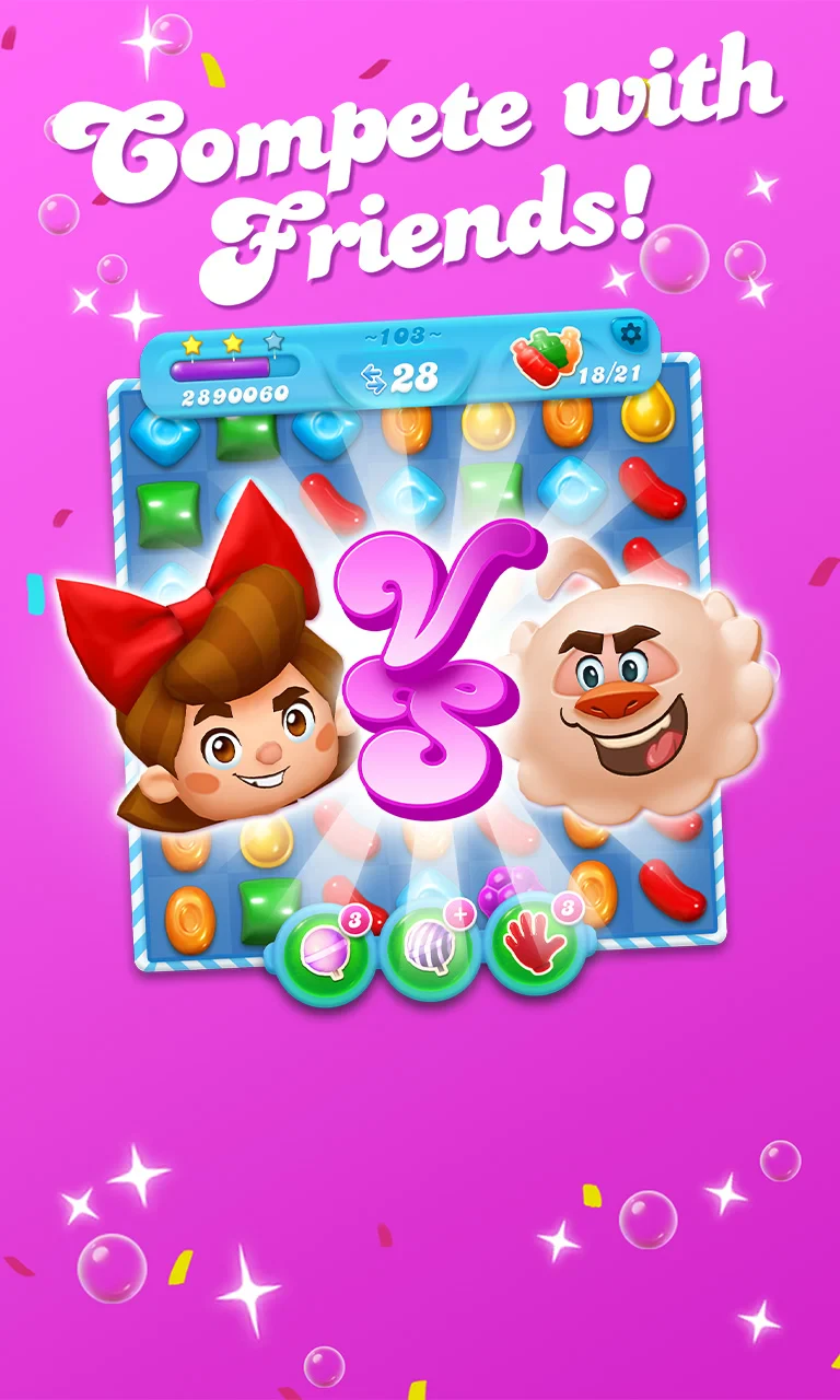 • [Modes or Levels]: “Candy Crush Soda Saga” primarily features a single-player campaign consisting of countless levels across multiple themed worlds. This endless campaign structure ensures high replayability, with new levels, obstacles, and challenges constantly introduced. There are also special event modes and limited-time bonus levels for added variety.