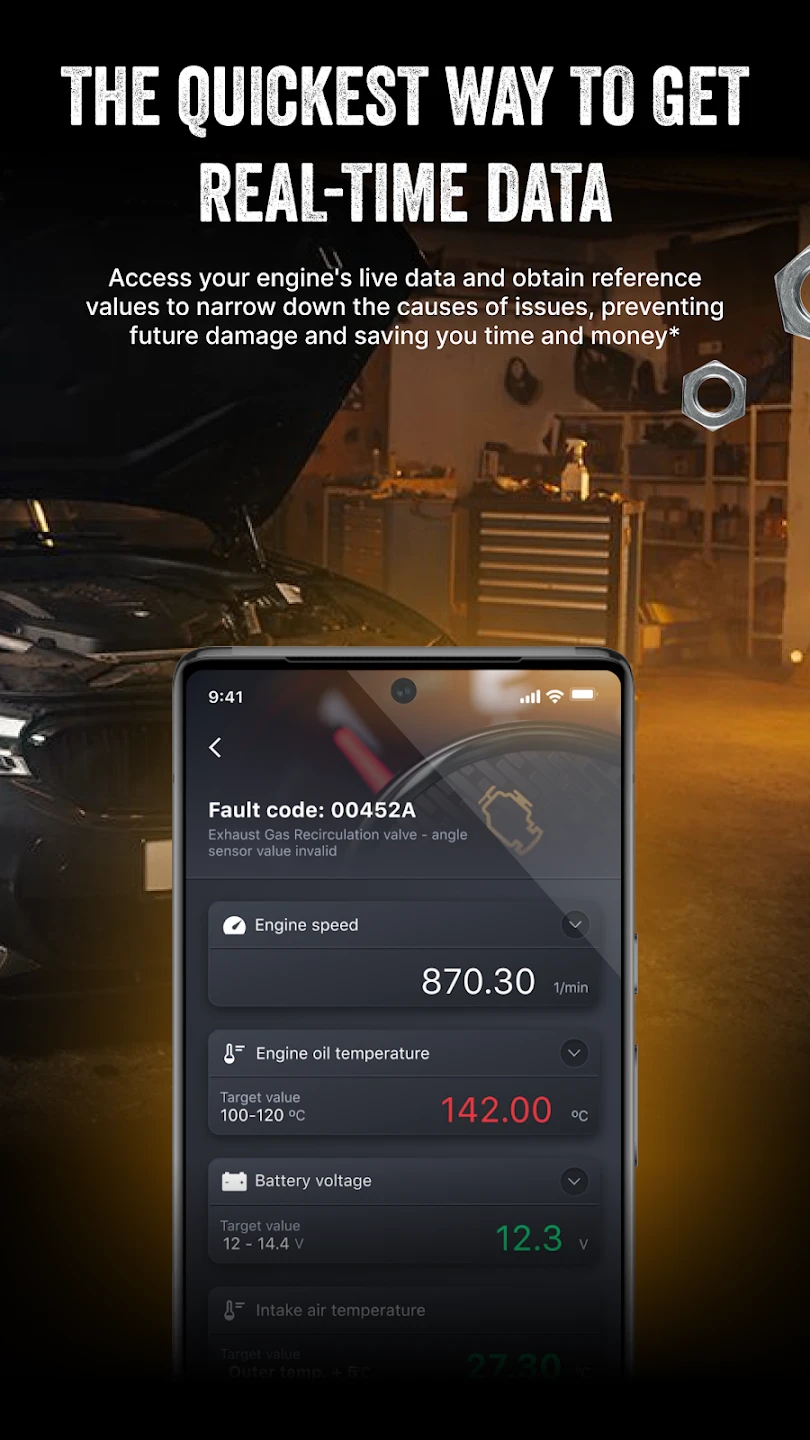 • Real-Time Data Monitoring: Track live engine parameters like fuel injection, ignition timing, and exhaust gas recirculation with just a few taps. This feature helps you quickly identify performance issues during driving, enabling proactive problem-solving before minor problems escalate into costly repairs.