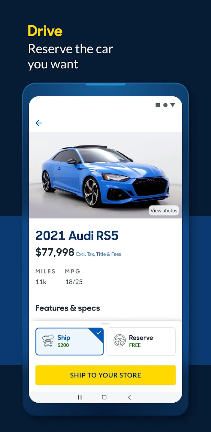 - Manage Your Purchase: Once you’ve decided on a car, the app guides you through the online ordering process, provides digital paperwork and payment options, and facilitates delivery services or helps you arrange pickup, ensuring a smooth transition from viewing to driving away.
