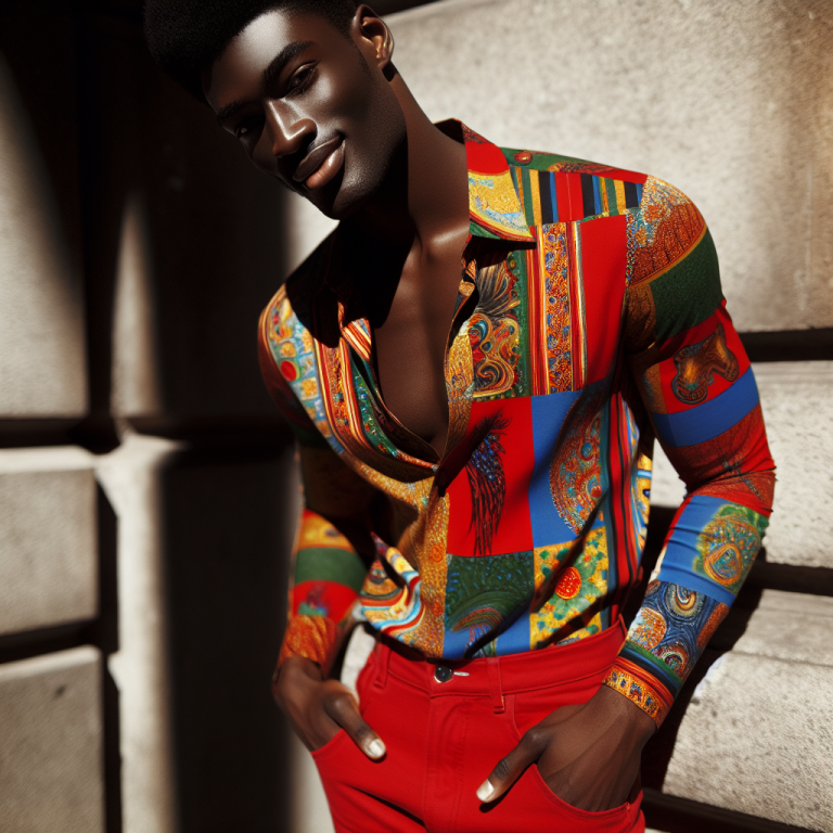 Stylish Black Man in Vibrant Shirt & Red Jeans