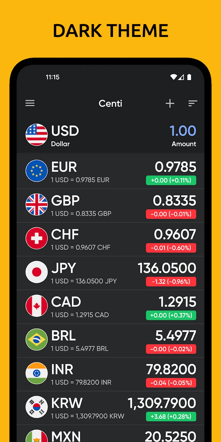 - Offline Mode and Dark Theme: Perform currency conversions when connectivity is limited, and use the easy-to-read, low-power dark mode for extended usage in low-light environments or on-the-go scenarios. This enhances usability during travel or in areas with poor network coverage.