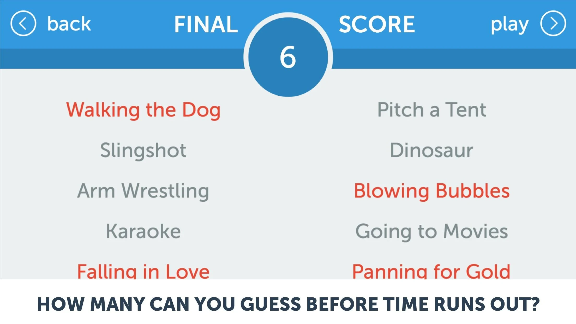 • Synchronize actions with the music to create memorable, guessing-friendly performances.
