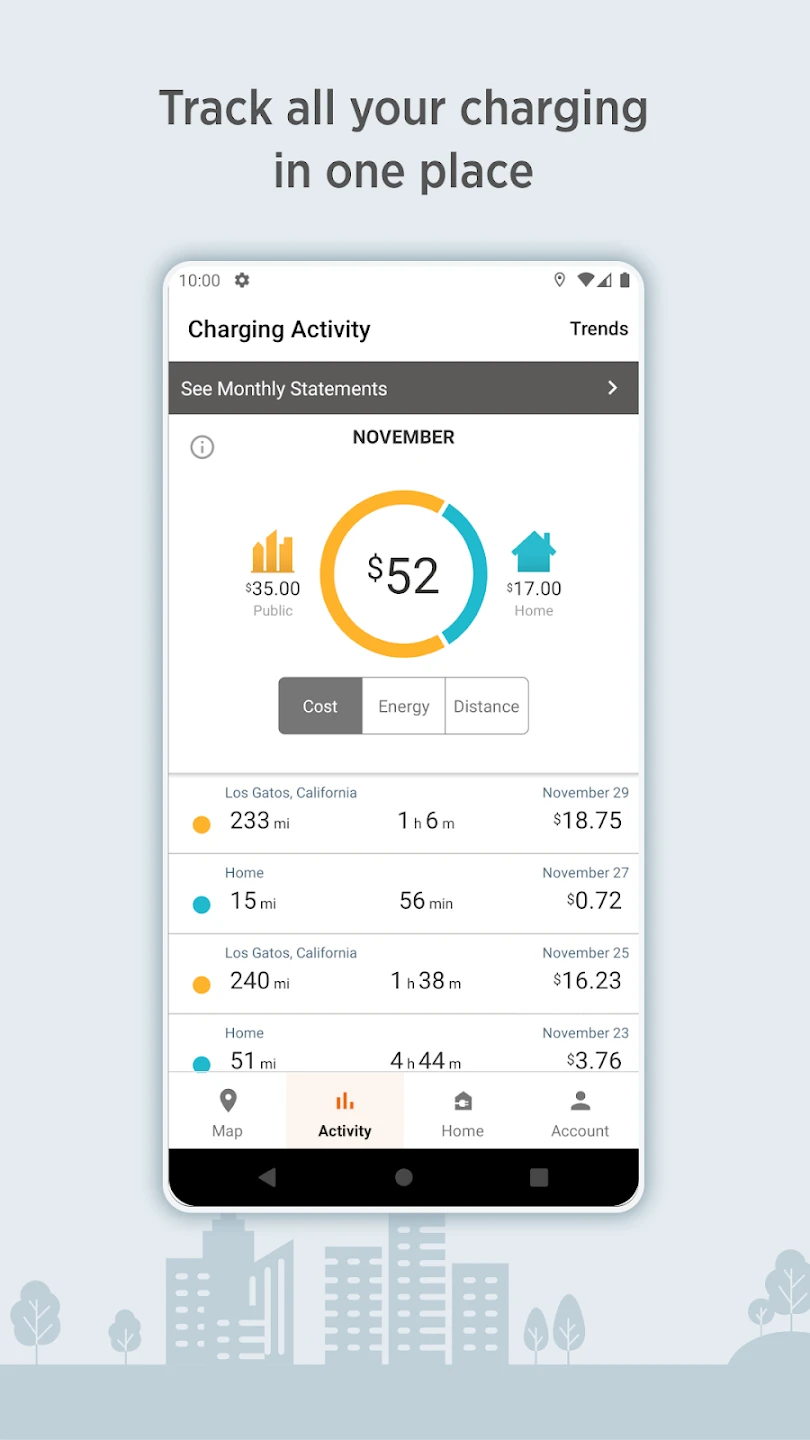 - Energy Insights: Track energy consumption and cost per charge. The detailed reports help EV owners understand their vehicle’s efficiency, potentially saving hundreds annually on electricity.