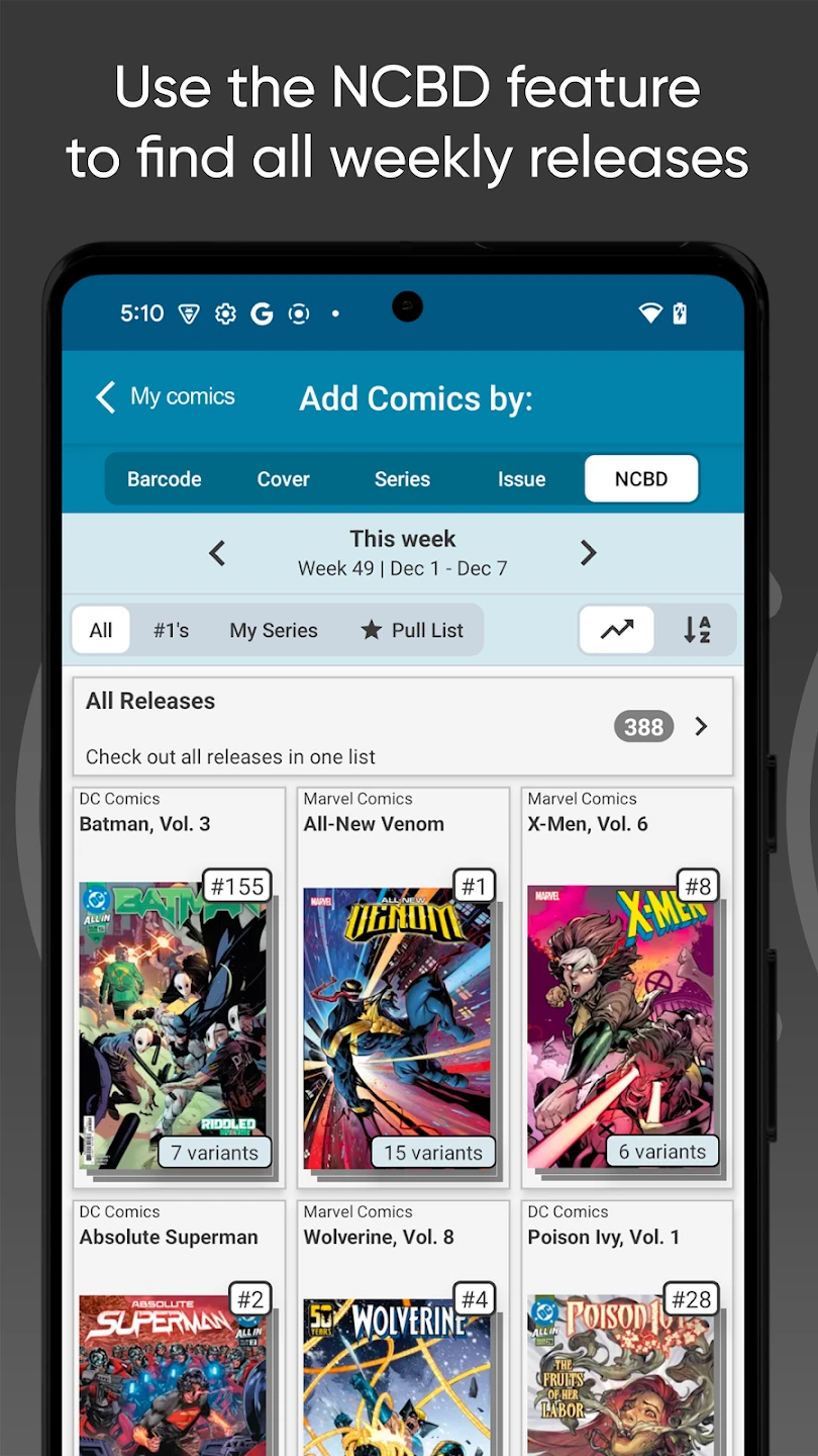 - Detailed Issue & Volume View: Access in-depth information including plot summaries, writer/artist line-ups, full cover images, first and last appearances, and a unique issue number in context for specific publications. Easily verify details or dive into the lore of specific story arcs.