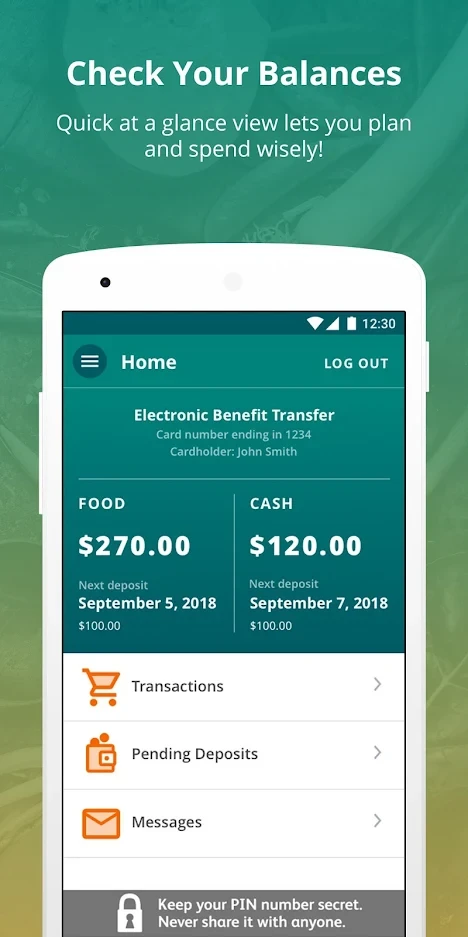 - Secure Transaction History: Easily view past EBT purchase details including receipts and merchant names for record-keeping purposes. This capability streamlines expense management and simplifies budget planning for recipients.