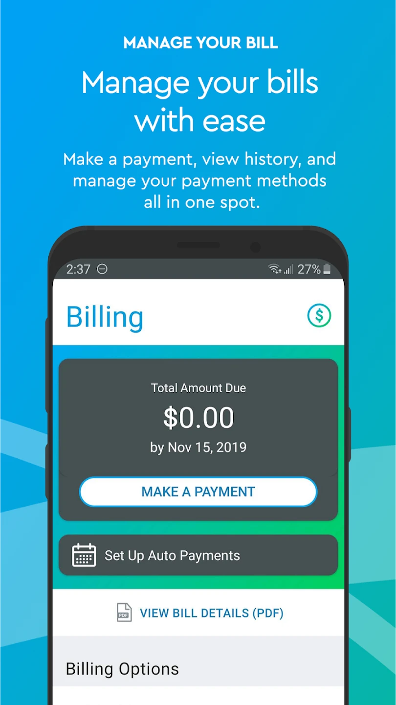 A: Yes, the app includes a billing section where you can view your statement and manage your payment methods. You can typically set up auto-pay or make one-time payments using various supported payment options securely.