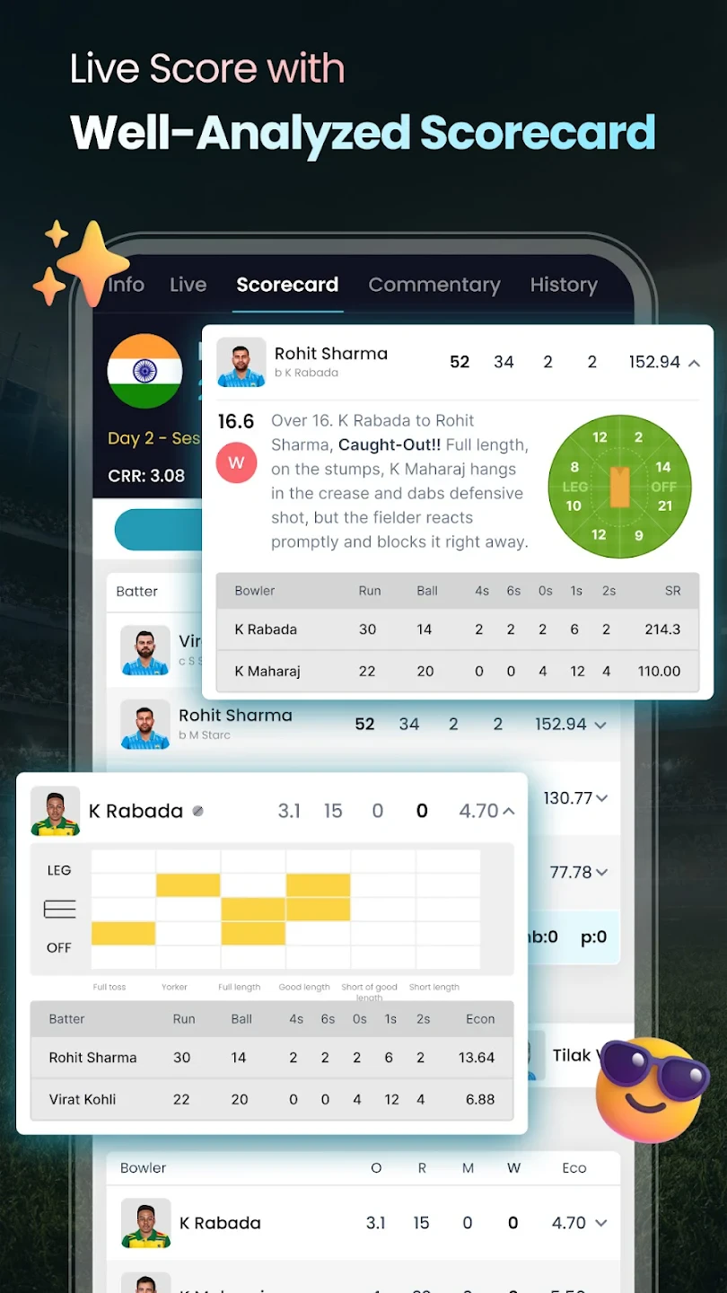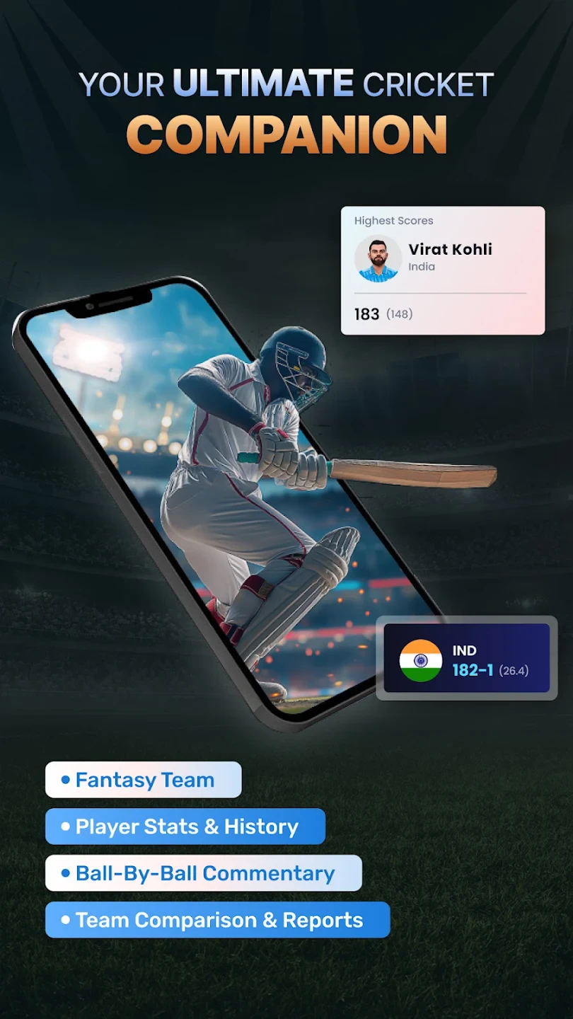 - Live Score Updates & Commentary Feed: View the very latest run rate, wickets, and overs alongside continuously updated commentary from official sources. For busy users, this means getting concise, reliable information quickly on the go, enhancing the experience during live matches.