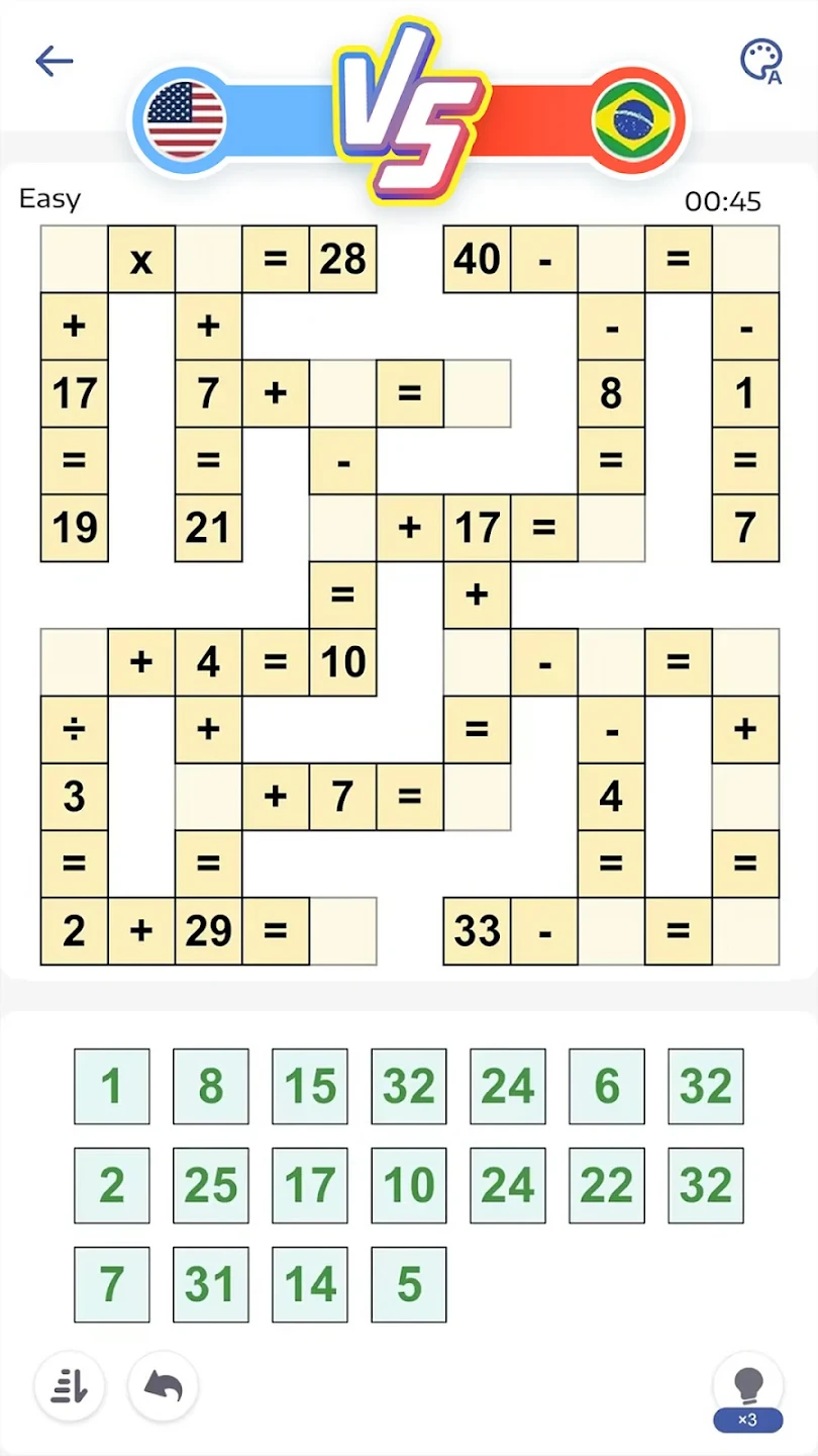- Step 1: Open the game and select “Easy Mode” for your first level. You’ll see a small grid (usually 4×4) with some pre-filled numbers and operation symbols.