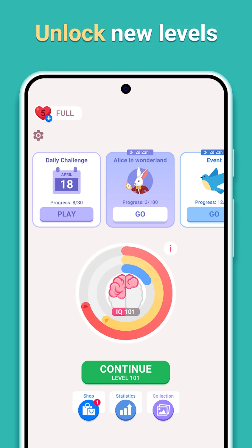 - Visuals or Art Style: The interface features a clean, minimalist design with smooth animations. The color scheme uses calming blues and neutral tones, creating an uncluttered visual experience where the puzzles themselves take center stage, with subtle animations when letters are revealed or categories unlocked.