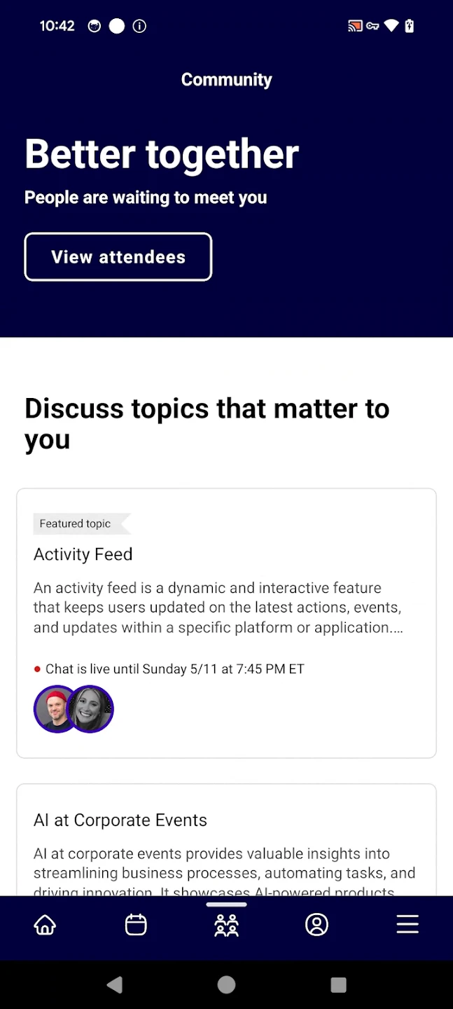 - In-Session Engagement & Feedback Tools: Facilitate live polling, virtual Q&A, session ratings, and real-time chat during events; collect immediate attendee feedback via surveys or NPS. This enhances interactivity for virtual and hybrid events, providing valuable data for exhibitors and improving session effectiveness.