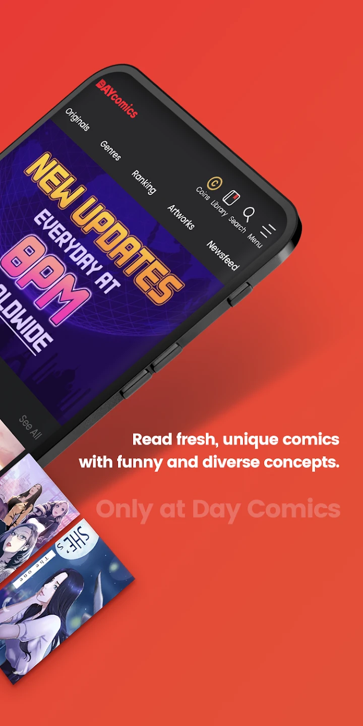 Q: Does DayComics work on both iOS and Android devices, and is the platform regularly updated?
