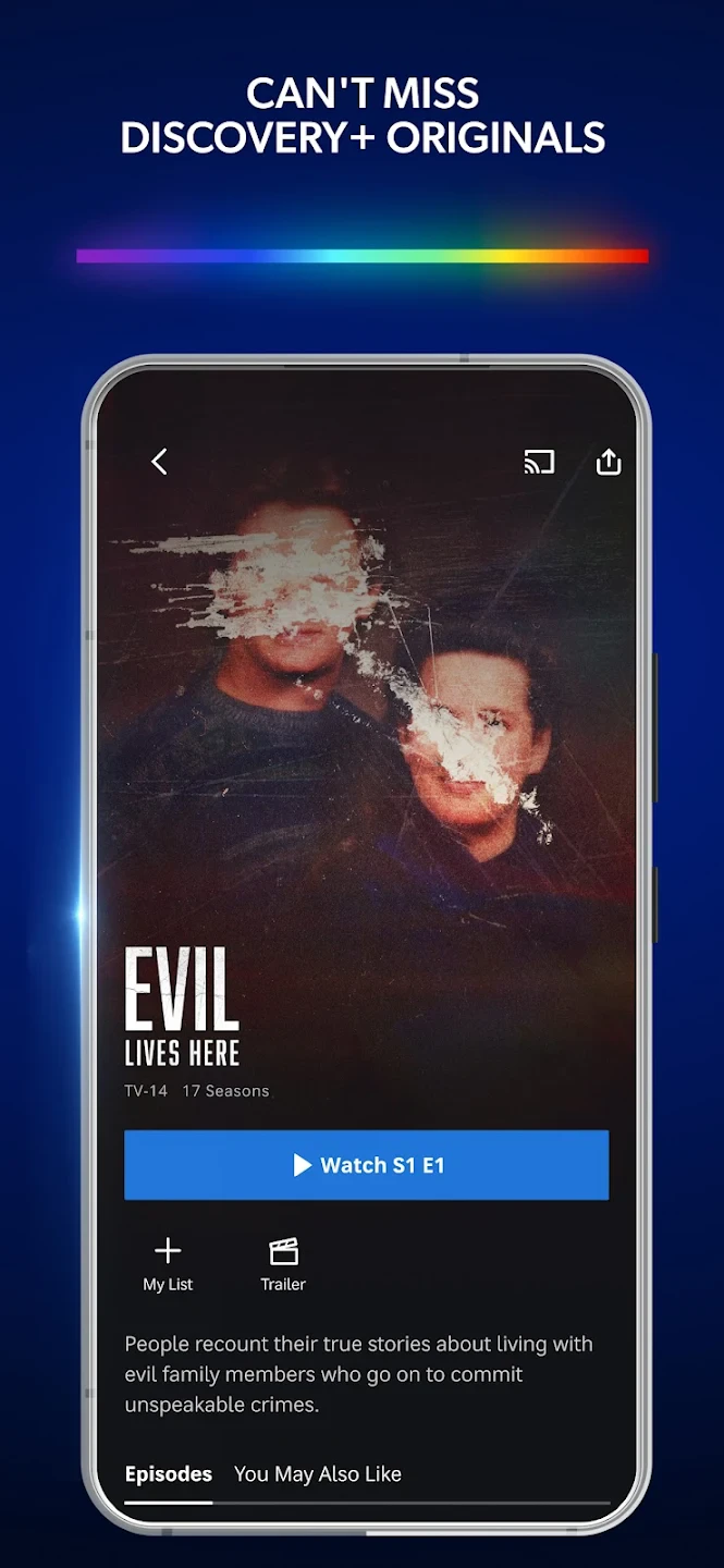 discovery+ | Stream TV Shows is a streaming subscription service that brings your favorite classic TV shows, reality TV, documentary series, movies, and other premium content directly to users’ devices. It allows subscribers to enjoy scheduled programming and on-demand viewing at any time, offering access to content hubs dedicated to discovery channels like Discovery, TNT, TBS, TruTV, and HGTV. This platform is perfect for fans of television nostalgia, reality enthusiasts, docudrama lovers, and anyone looking for a convenient and ad-free way to catch up on or rewind episodes from their favorite Discovery-branded shows.