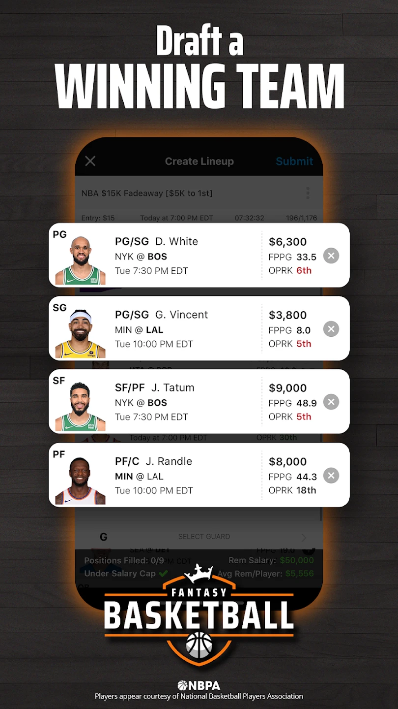 - Simple Starting Lineup Builder: The Starters feature allows users to pre-draft specific players for the upcoming day’s games and even contest rules before the main contest clock closes. Using user-friendly point projections and news highlights, this tool significantly improves usability by reducing the guesswork and ensuring teams field the optimal lineup to maximize potential points, especially crucial when managing multiple daily slate contests.