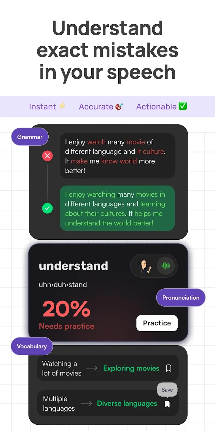 - Clear feedback mechanism for pronunciation
