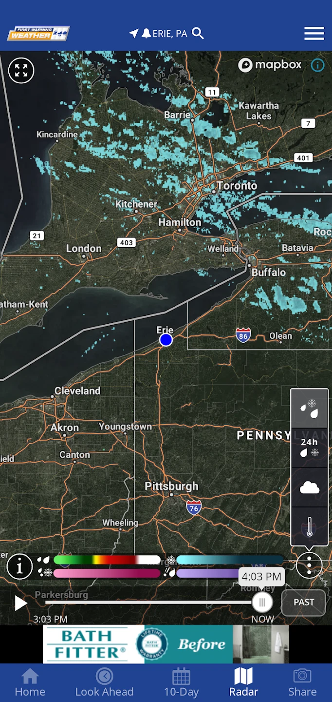 - Severe Weather Alerts: Receive immediate notifications for watches and warnings issued by official local authorities regarding storms, floods, blizzards, and other potentially dangerous weather events specific to the Lake Erie area. This critical feature ensures you are promptly informed about hazardous conditions affecting you directly, giving you crucial time to take necessary safety precautions or adjust your plans.