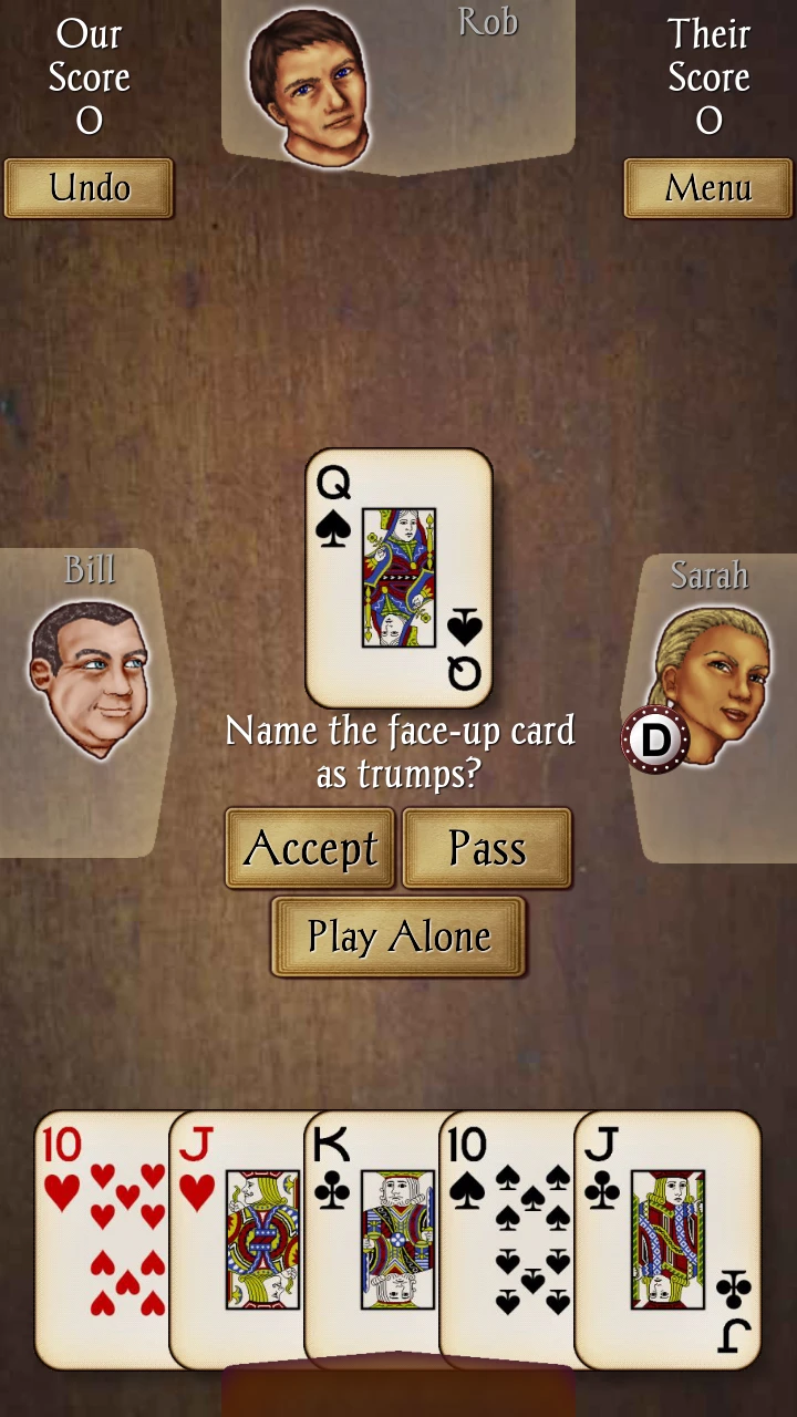 • [Controls or Interface]): Euchre Pro relies primarily on touch controls, optimized for mobile play. Players tap their cards to select them during bidding and play phases. The interface is designed for intuitive navigation and quick access to actions like passing or challenging bids. Ease of control is crucial for seamless gameplay on touchscreens.