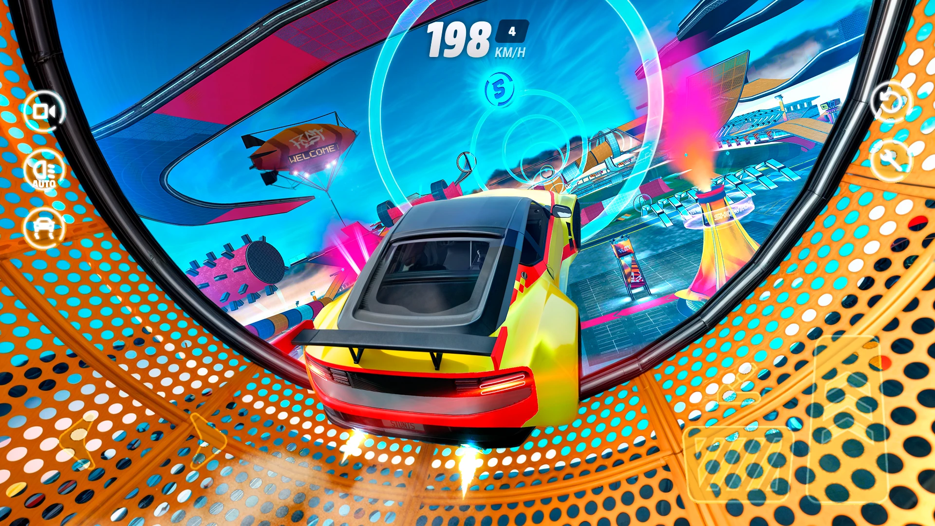 - [Modes or Levels]: Played through an endless runner format, earning currency for each lap completed. Players can unlock 15 different stunt vehicles with unique handling traits and special abilities, with daily challenges adding time-sensitive goals.