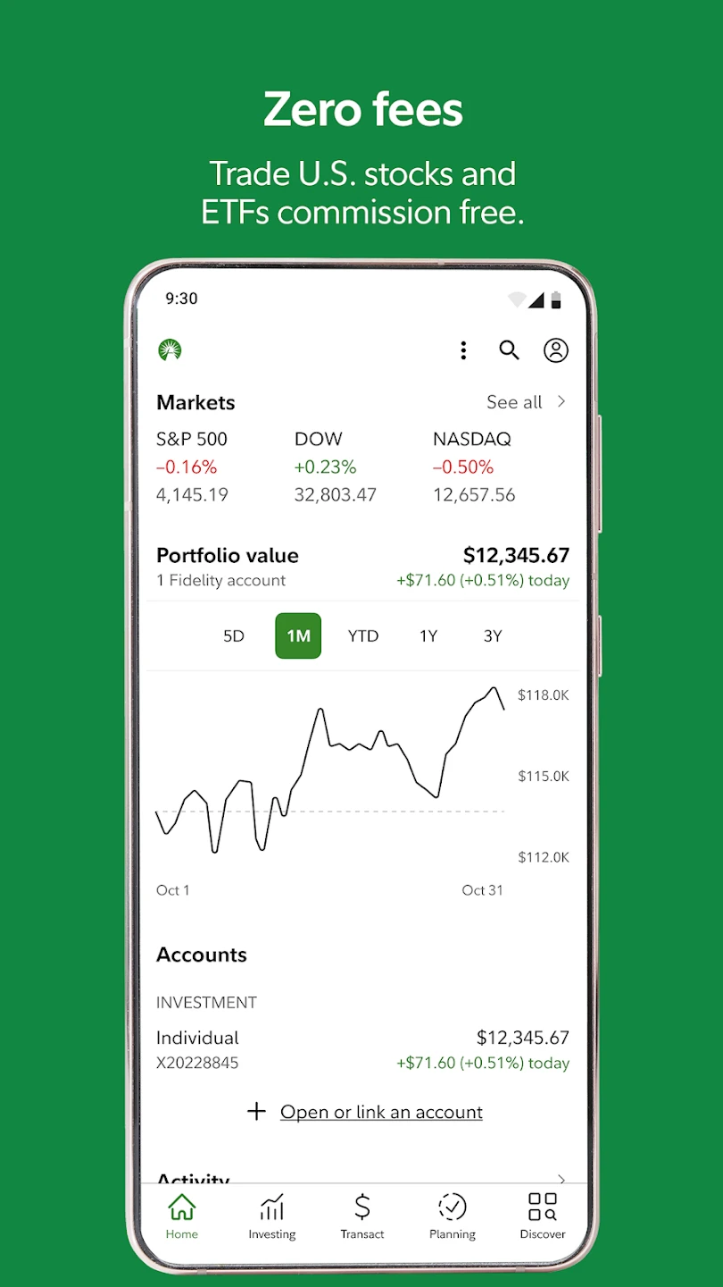 - Mobile App Integration (Web & Brokerage): Manage accounts across Fidelity’s different platforms, including Web and Fidelity Investment platforms, all within a unified mobile experience. This integration simplifies managing assets, simplifying oversight for those juggling multiple accounts or investment types on the go.