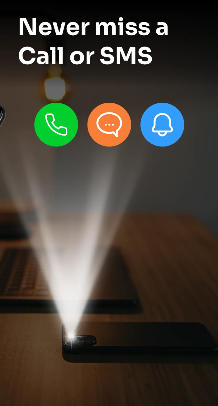 The Flashlight : SMS & Call Alert app is a versatile mobile tool combining a powerful flashlight feature with customizable alert notifications for SMS messages and incoming calls. It allows users to quickly illuminate their surroundings and receive timely notifications even when their phone is locked or screen brightness is dimmed, making it essential for situations requiring immediate attention.