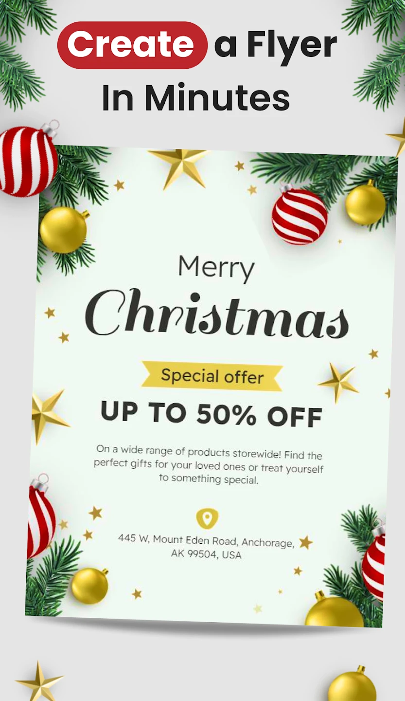 The Flyers, Poster Maker, Design app empowers users to create professional flyers, posters, and other promotional graphics. It provides an intuitive drag-and-drop interface and a library of templates, making design tasks accessible to beginners and useful for professionals needing quick, impactful visuals. Ideal for marketers, event planners, small businesses, or anyone requiring eye-catching materials.