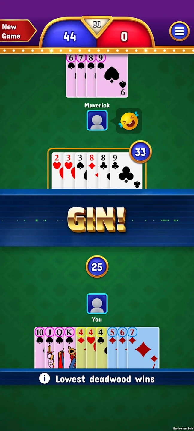 - [Core Gameplay Loop]: Players take turns drawing cards from a stock pile or the discard pile and discarding one card per turn. The primary objective is to form three or four sets (three cards of the same rank) and runs (successively ranked cards of the same suit). A player scores by discarding a card called “Lawn Gin” (or “Gin”), which means having a hand where the total value of unmatched cards is 10 points or less. Interaction is centered around strategic card selection and observation of discarded cards from opponents.
