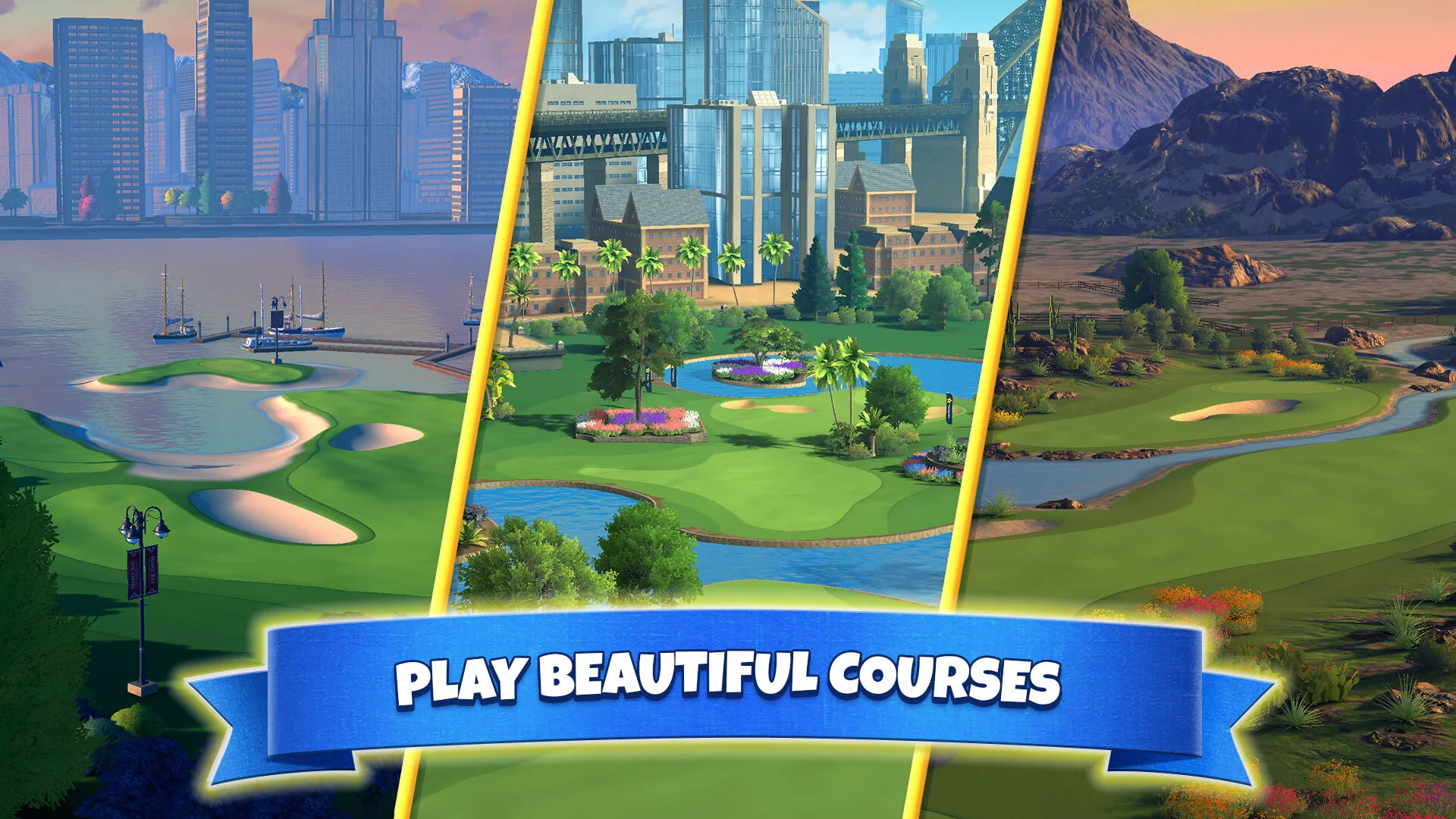- Visuals or Art Style: The game features bright, colorful cartoon graphics with cute character designs. Expect vibrant courses with detailed animations for character movements and satisfying swing effects using descriptive adjectives like “bouncy” and “fluid” to bring the playful atmosphere to life.