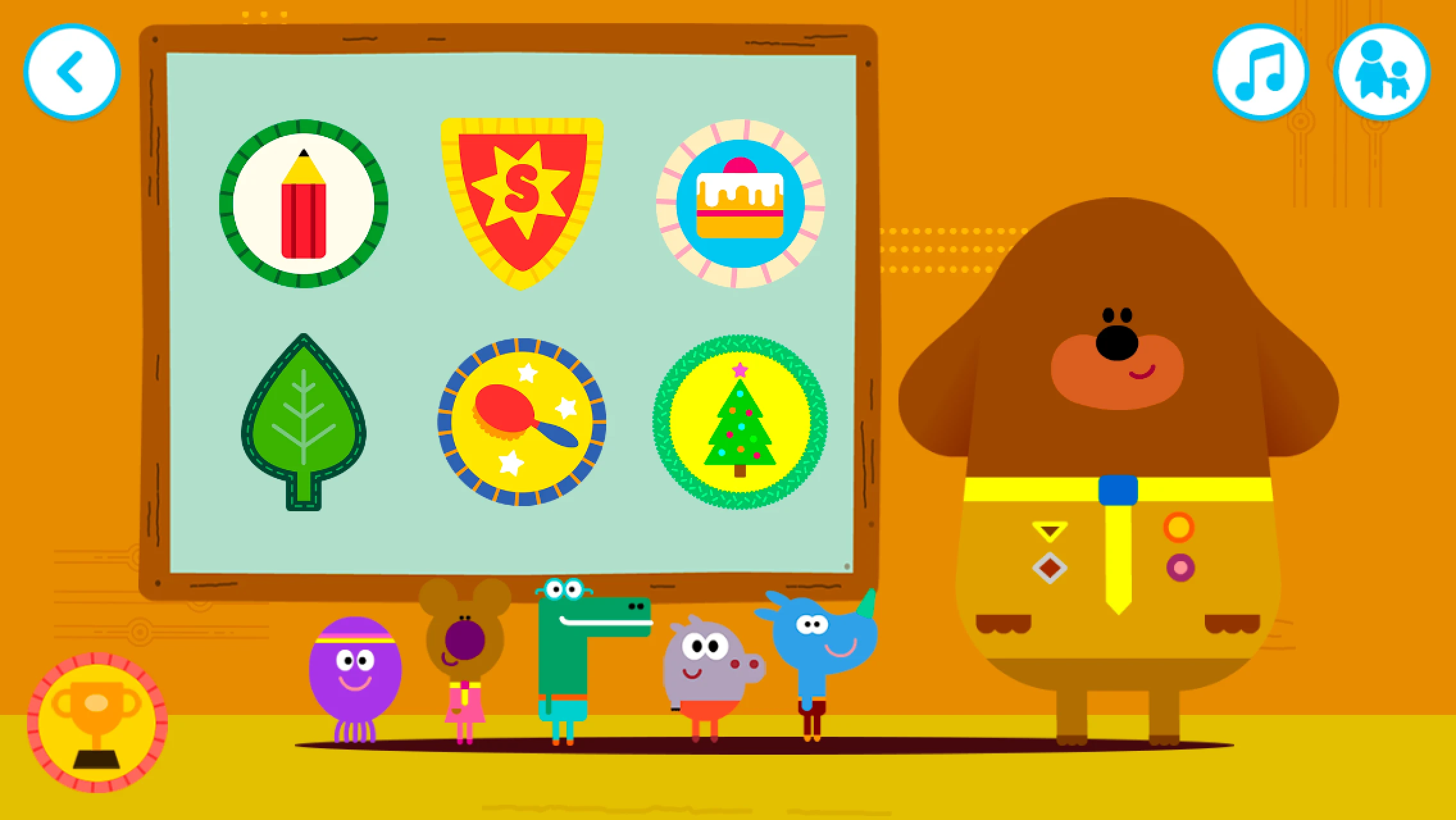 • [Visuals or Art Style]: The design uses bright, playful colors, smooth animations, and charming character designs that closely resemble the Hey Duggee TV show. The visuals are simple yet engaging, featuring friendly animal characters against clean, colorful backgrounds.