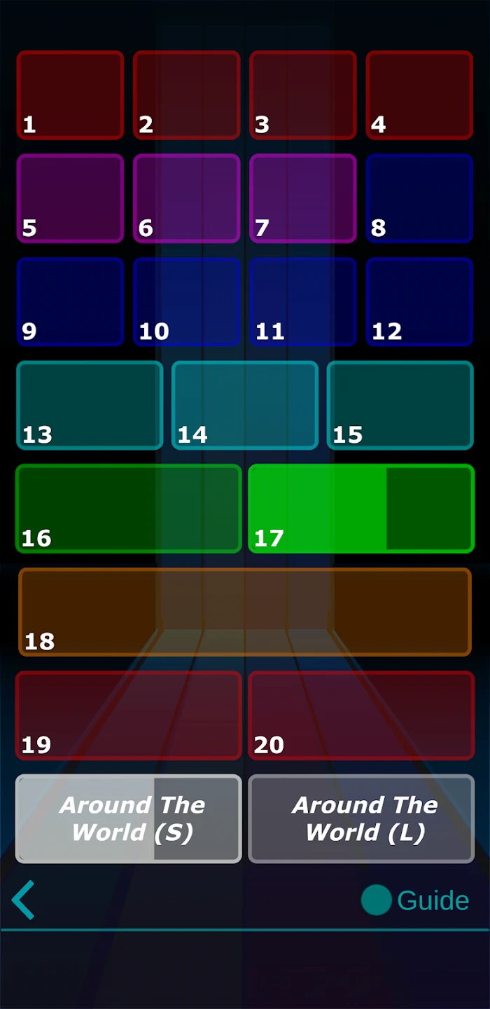 Popular among rhythm game fans. Has comparable progressive difficulty and rewarding level completion systems with electronic music tracks. |