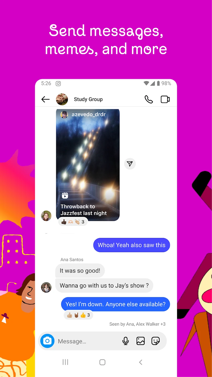 This app offers an Instagram-like interface with focus on text-based posts and direct conversations. Designed for concise interactions and real-time discussions, Threads complements Instagram’s visual focus with a more text-heavy social experience. |