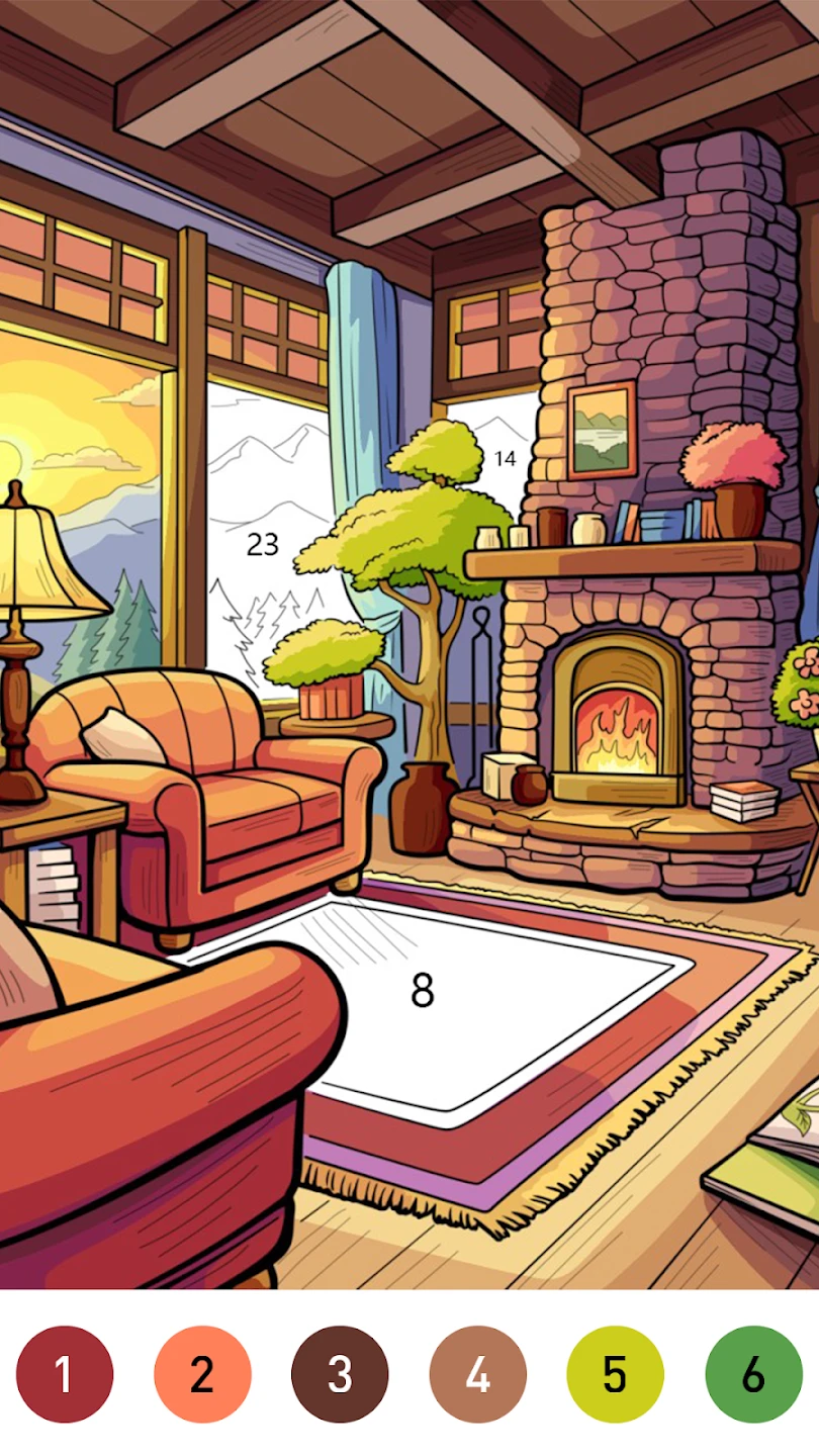 The Interior Color by Number Book is a puzzle and crafting game centered around coloring detailed room designs based on numbered patterns, transforming blank interiors into vibrant spaces. Belonging to the relaxing puzzle game genre, its appeal lies in the calming mechanics of following instructions and the creative satisfaction of designing cozy environments.