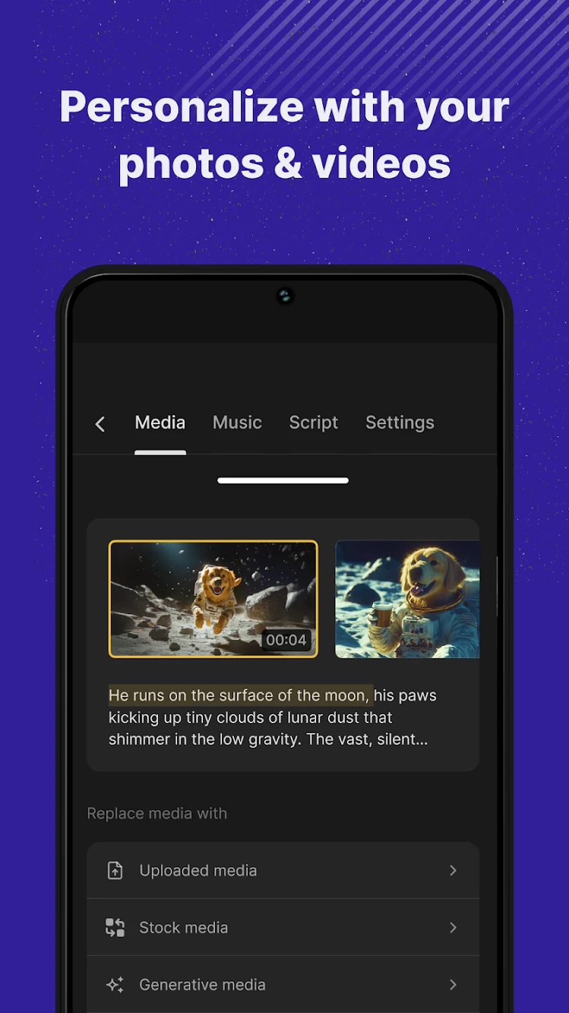 A: While the AI creates the foundational scene efficiently, the user has considerable control. You can replace the generated visuals with assets from its library, adjust timing, add text overlays, apply specific transitions, and even use drag-and-drop editing to significantly modify the scene to better match your vision.