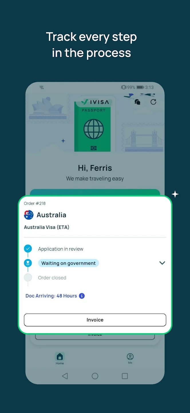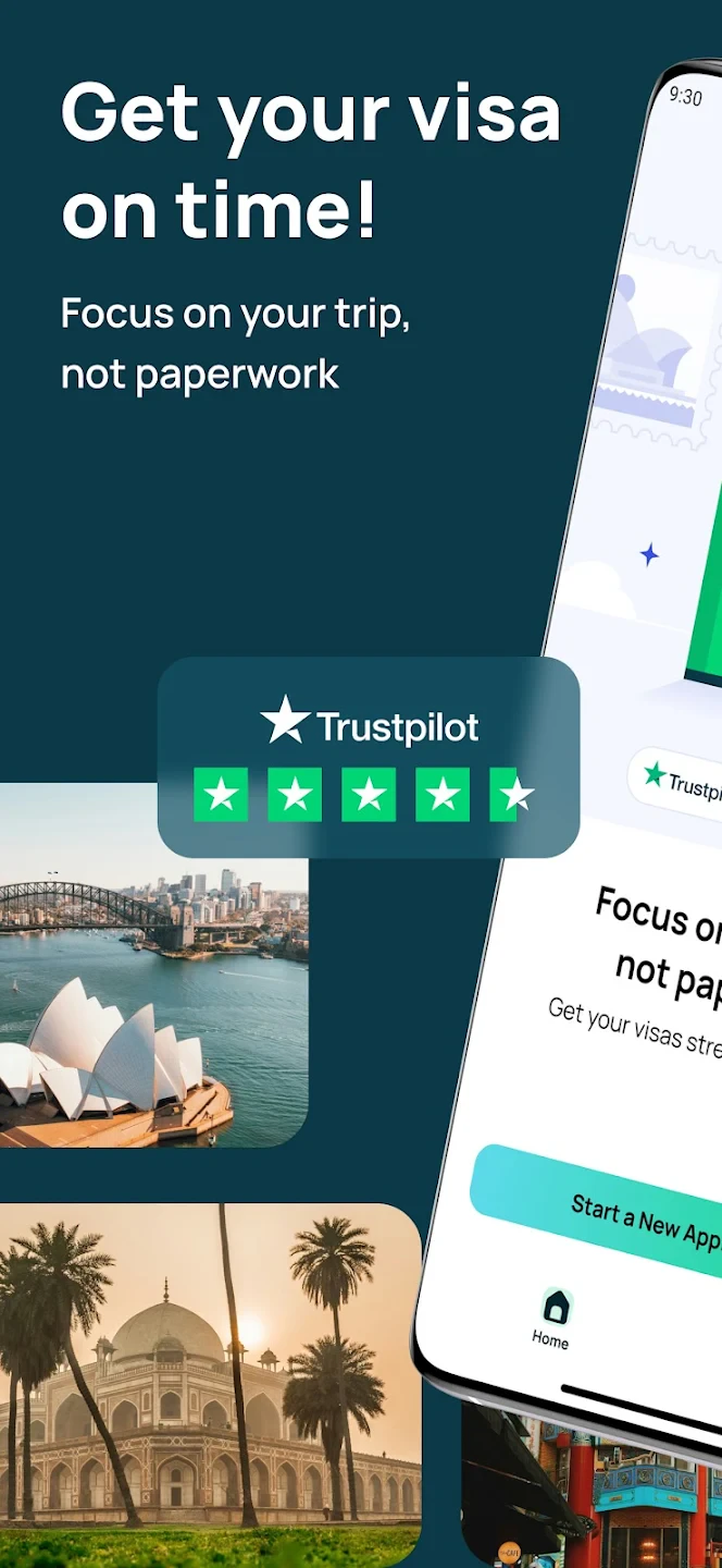 - Integrated Application Portal: Directly submit your eVisa or ETA applications through our secure interface with minimal paperwork. The one-stop solution simplifies the process, guiding you through official government procedures without switching apps.