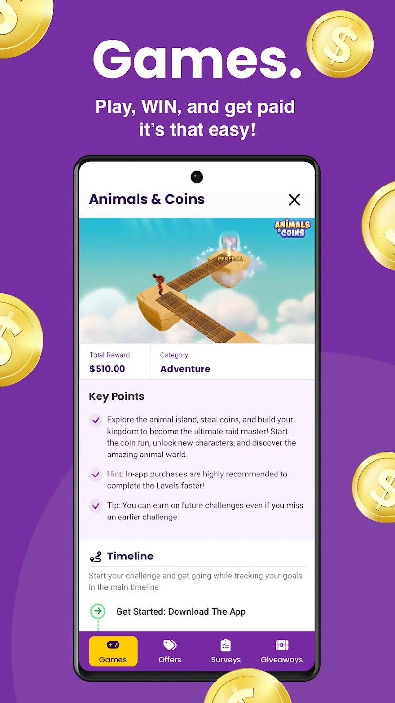 KashKick: Get paid to have fun is a digital platform designed for individuals seeking supplemental income through enjoyable activities they already like doing online. Whether it’s taking surveys, testing new products, or participating in short tasks, the app connects users with opportunities to earn money in a flexible way. It’s ideal for freelancers, remote workers, and anyone looking for side hustles that blend earning potential with personal enjoyment and convenience.