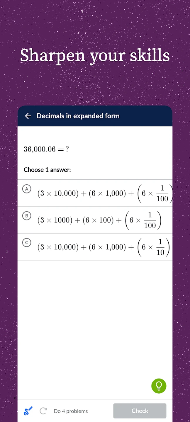This app offers bite-sized lessons and practice problems in science, math, and programming, focusing on conceptual understanding with quick quizzes. Known for its clear, concise explanations and interactive problem-solving approach. |
