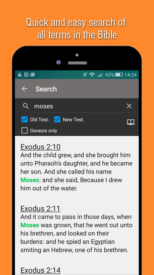 - Complete Offline Content: Instantly access the entire King James Version without downloads or data usage. This eliminates interruptions, letting you read during commutes or in locations with limited access.