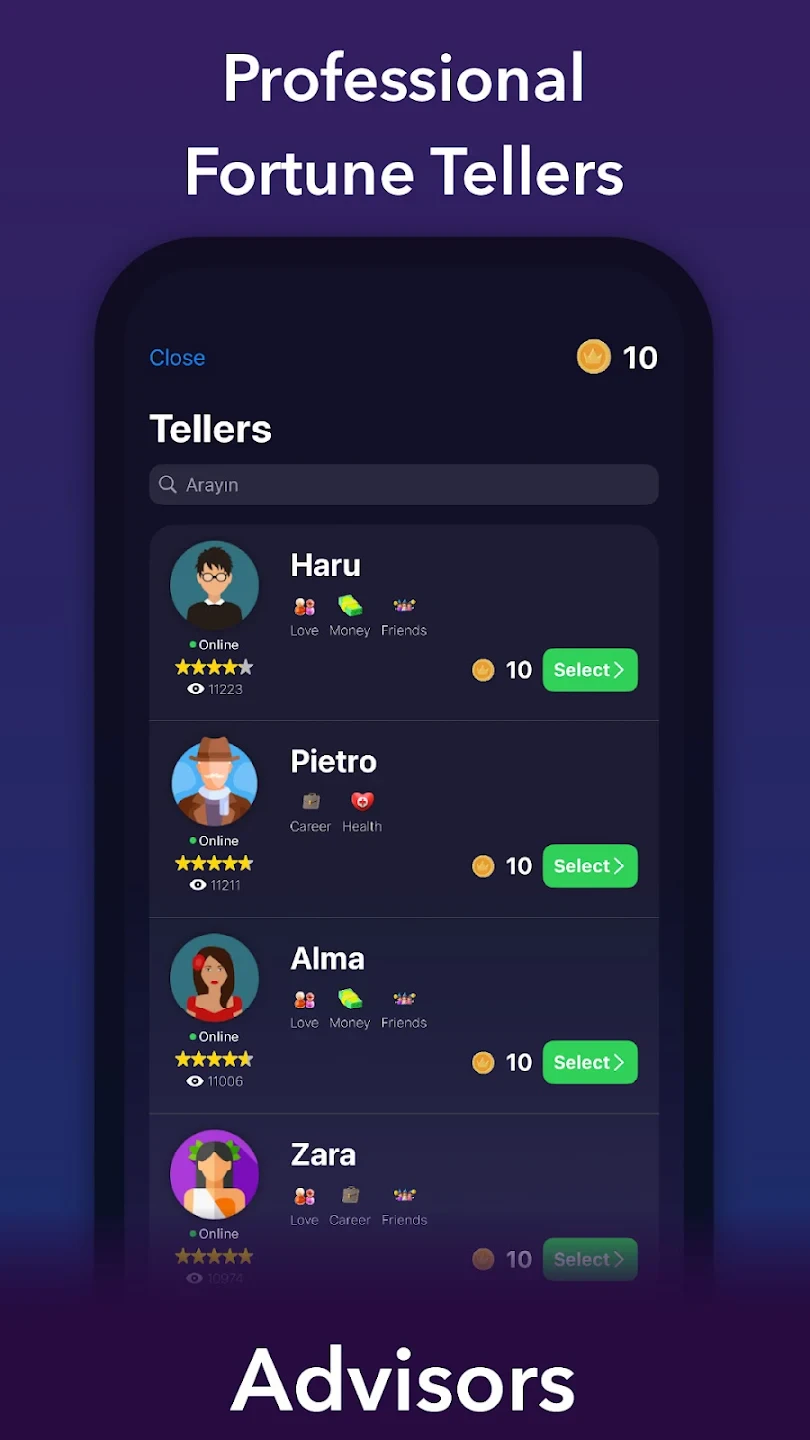 Another versatile app offering detailed tarot readings, horoscopes, and personality matching features with customizable spreads and extensive card decks. |