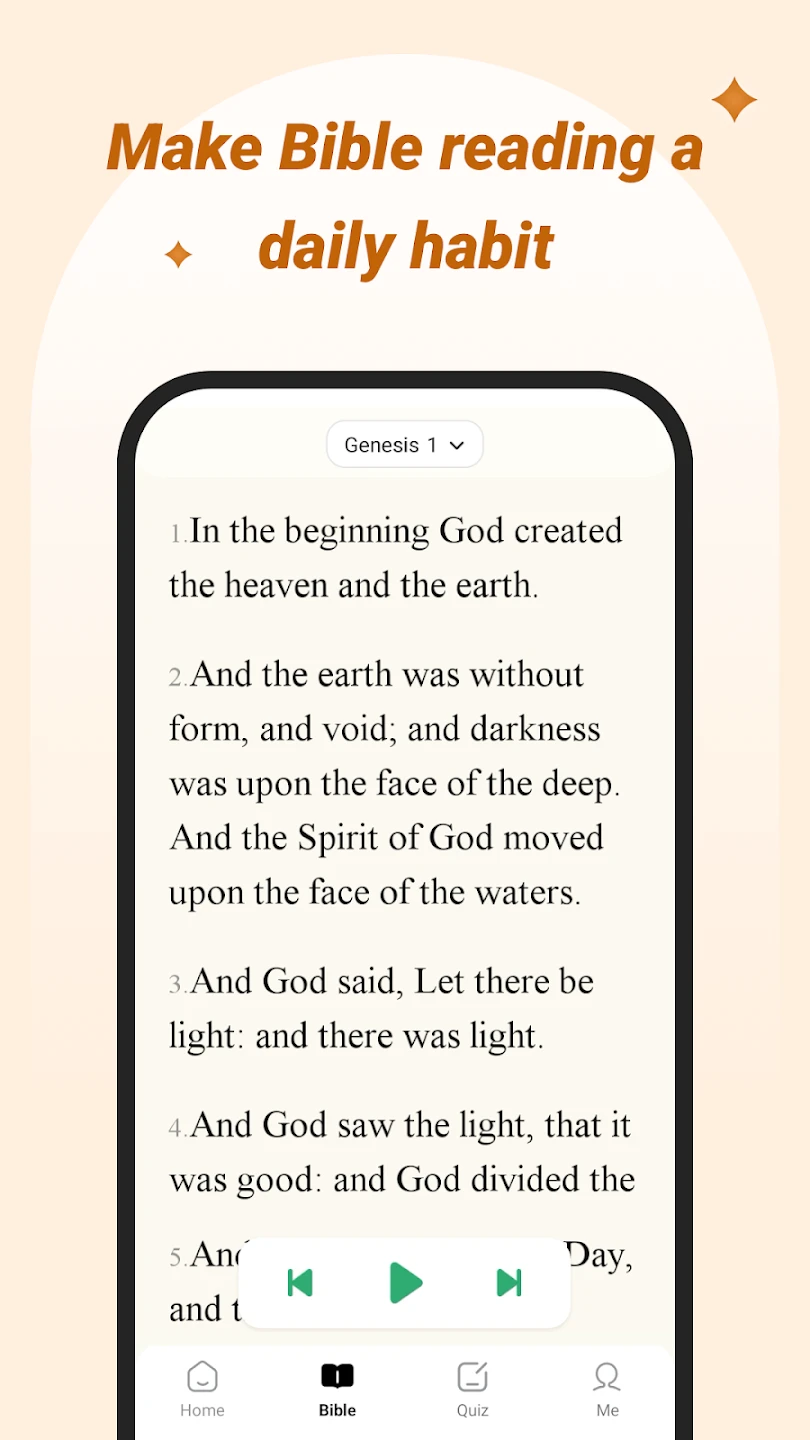- Versatile Audio Player: This feature enables users to play the KJV Bible readings directly within the app, choosing different books, chapters, or verses. The ability to easily select any passage saves time and streamlines the study process, making it ideal for focused exploration or personal reflection.