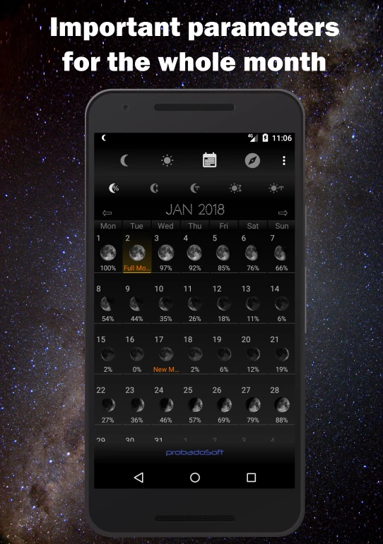 - Highly accurate astronomical data with detailed explanations for various moon phases